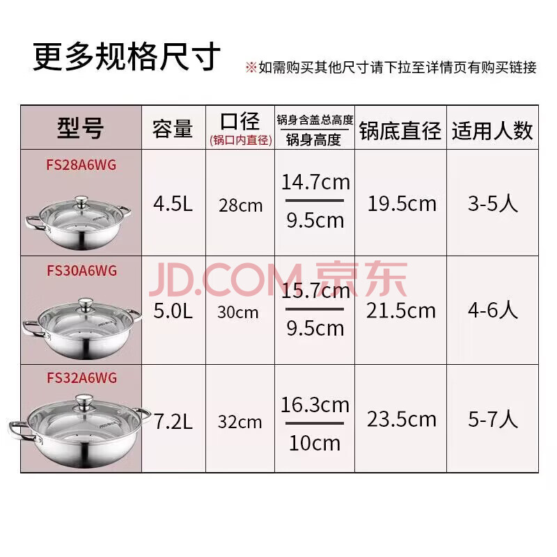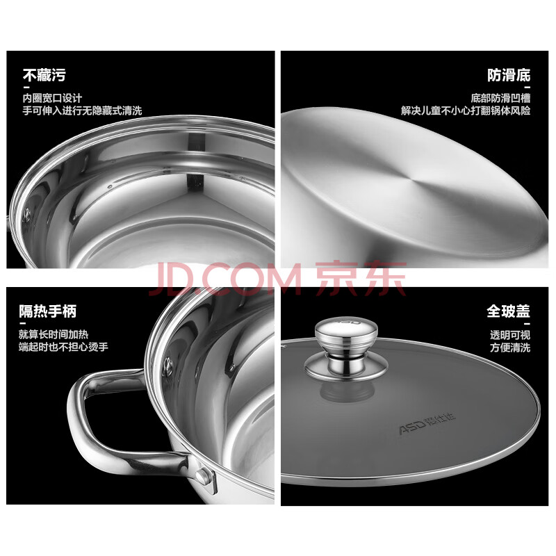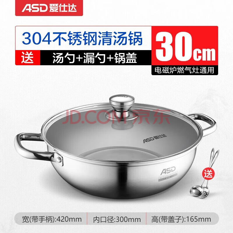 商品相册:爱仕达 ASD 火锅304不锈钢清汤火锅盆30CM汤锅明火电磁炉通用FS30A6WG第