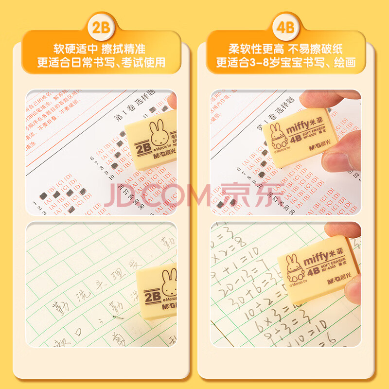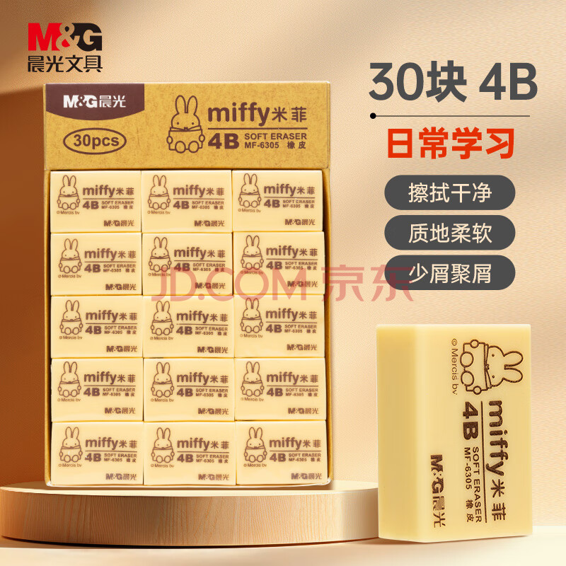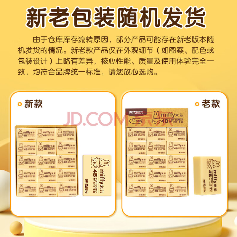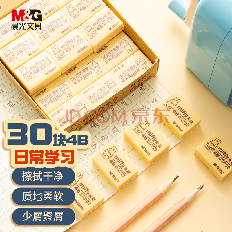 商品相册:晨光(M&G)文具30块4B中号橡皮擦 学生美术绘图考试橡皮米菲黄色FXP963SB第