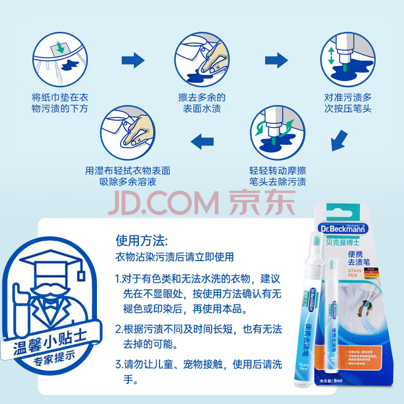 商品相册:贝克曼博士(Dr.Beckmann)便携去渍笔 9ml*2+4ml 免洗去油污羽绒服衣物清洁液 应急去污第