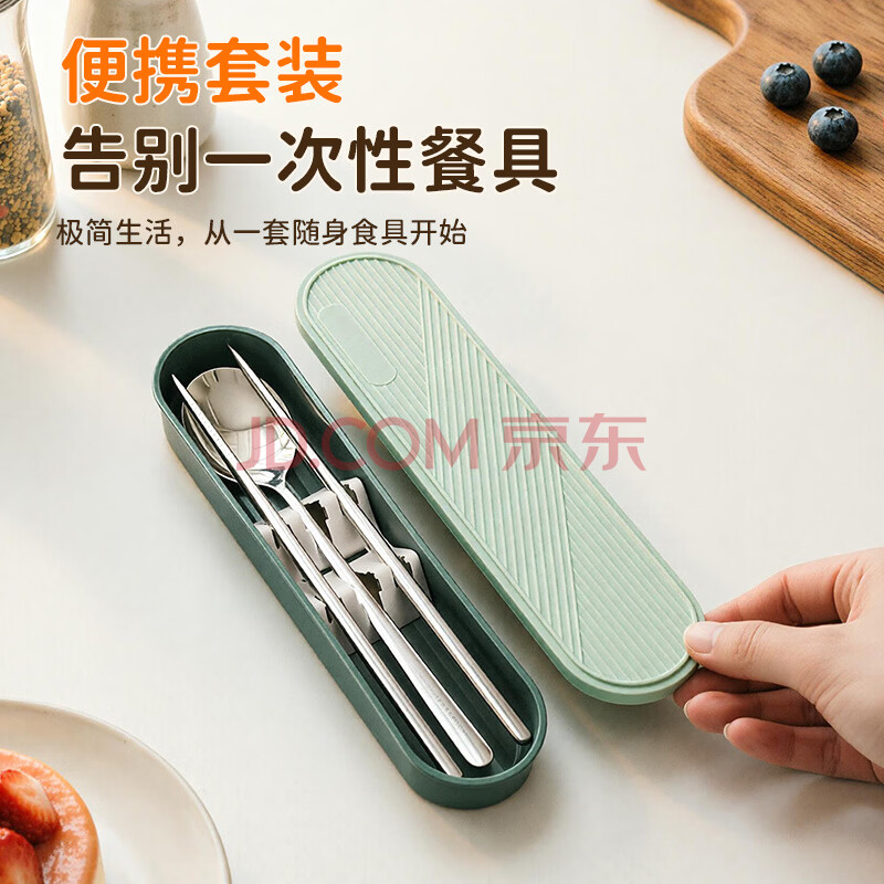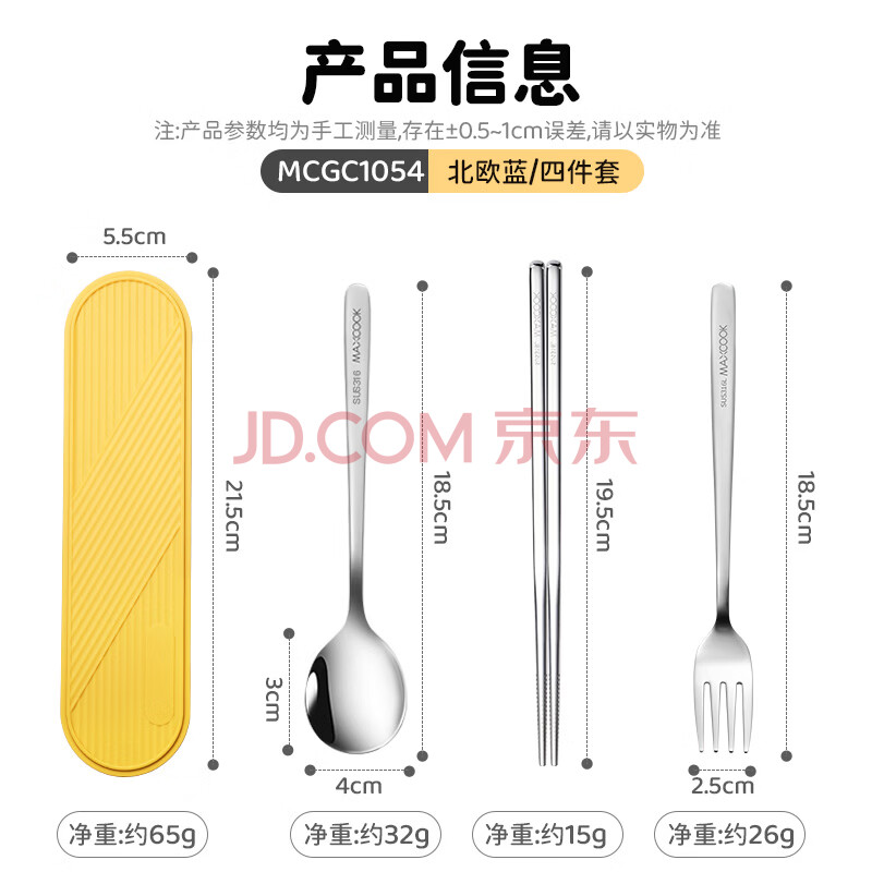 商品相册:美厨(maxcook)316L不锈钢筷子勺子叉子餐具套装 便携式筷勺四件套 蓝MCGC1054第
