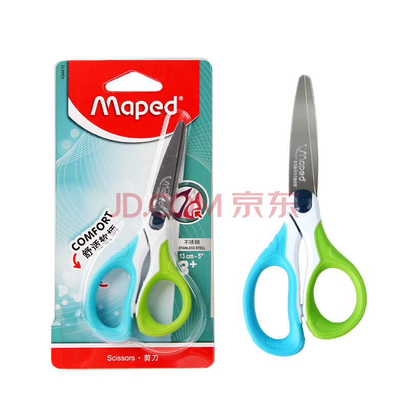 商品相册:马培德(Maped)手工DIY剪裁 安全不易伤手 握感舒适 学生幼儿美工圆头小剪刀 13cm彩趣软柄剪刀 484412CH蓝绿色第