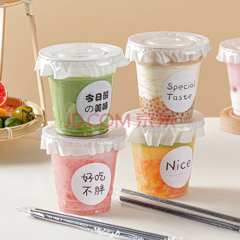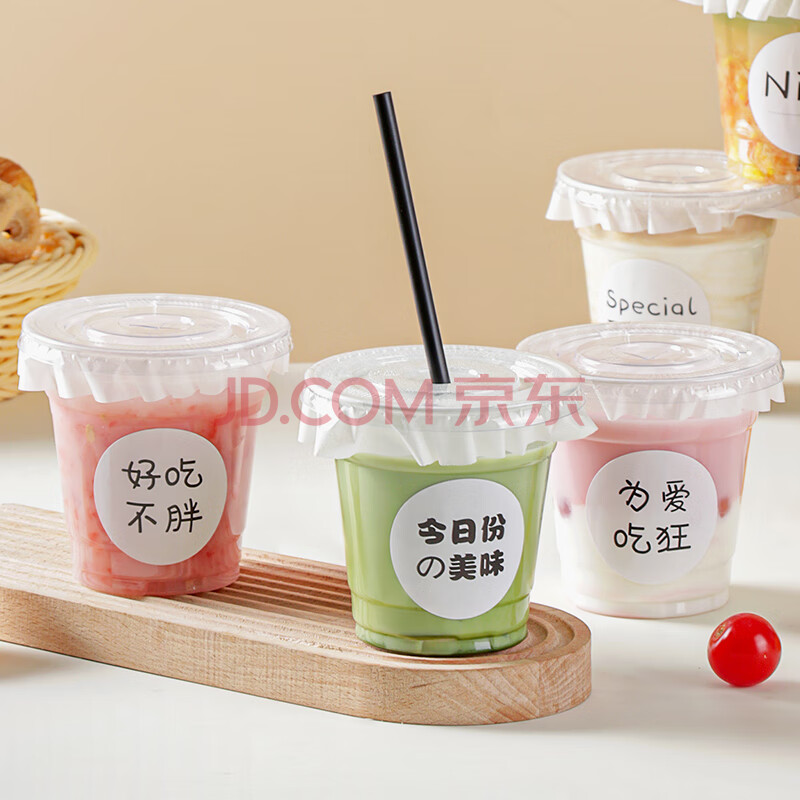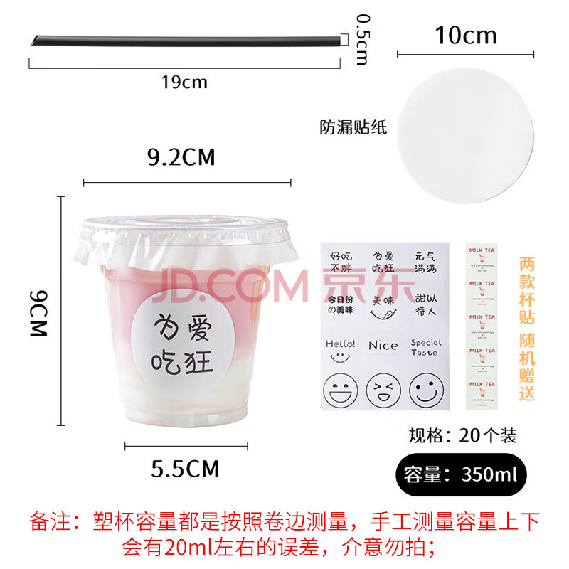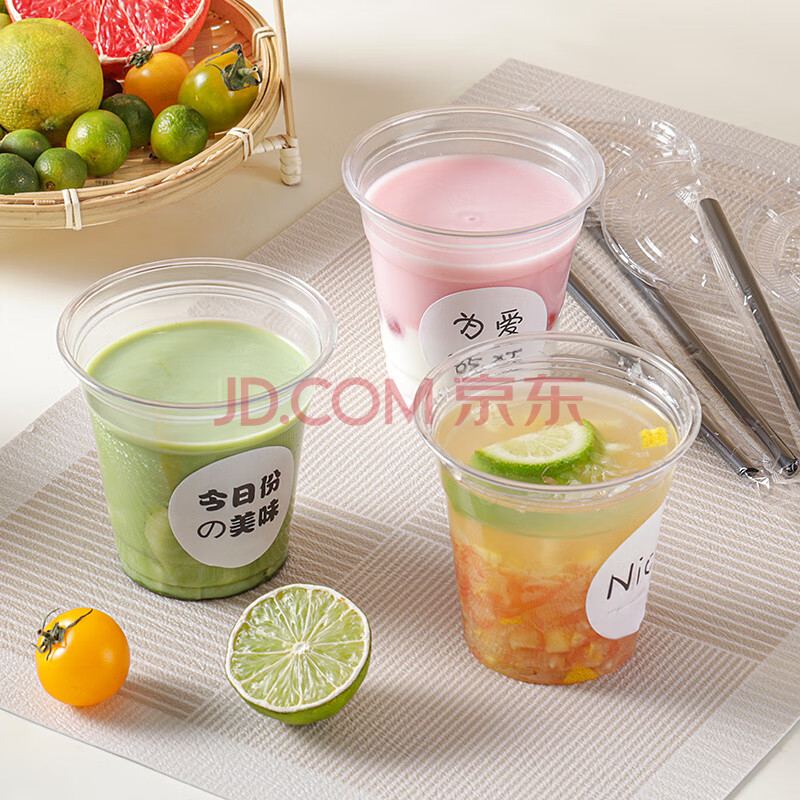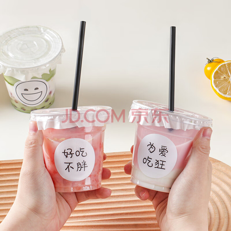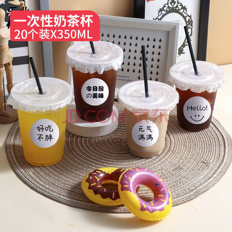 商品相册:拜杰奶茶杯一次性带盖饮品杯咖啡杯饮料杯350ML*20套【配贴纸+吸管】第