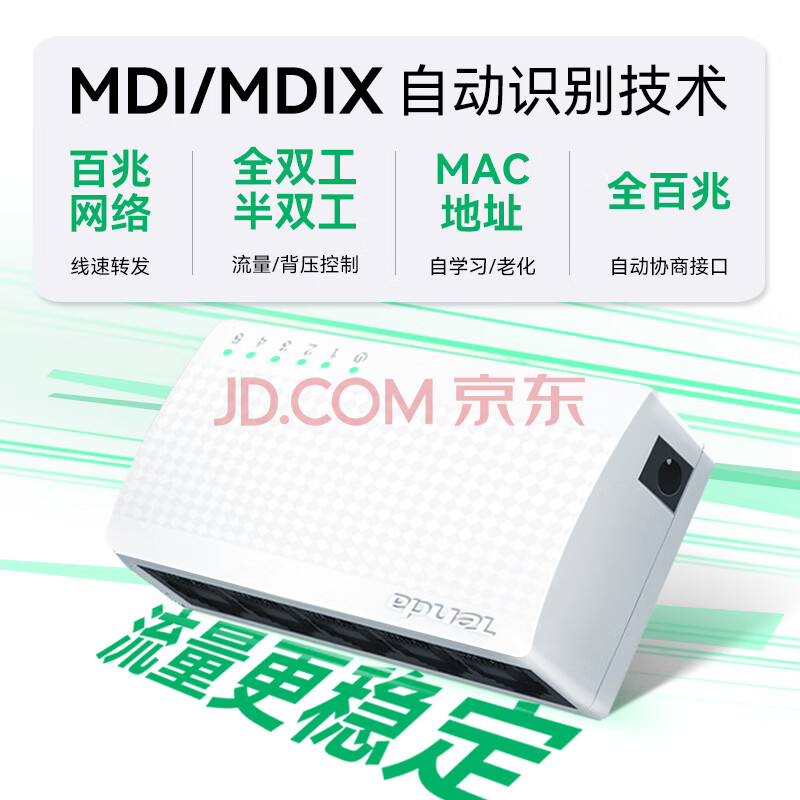 商品相册:Tenda腾达5口百兆交换机 4口家用小型监控交换器 网络扩展器网线分线器一分四 分流器 HUB集线器 S105第