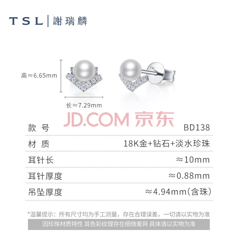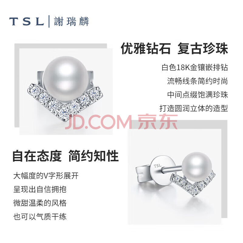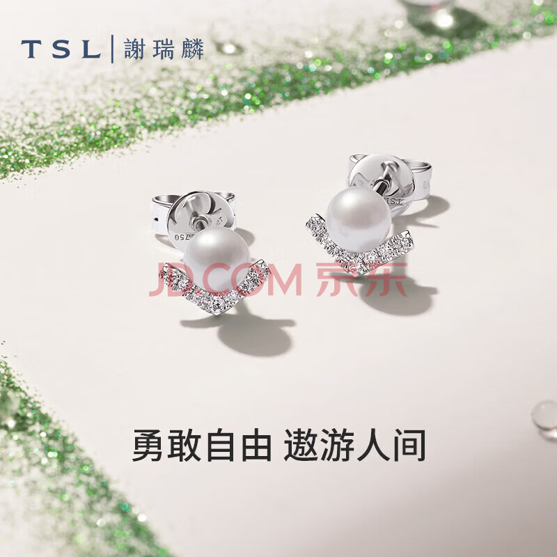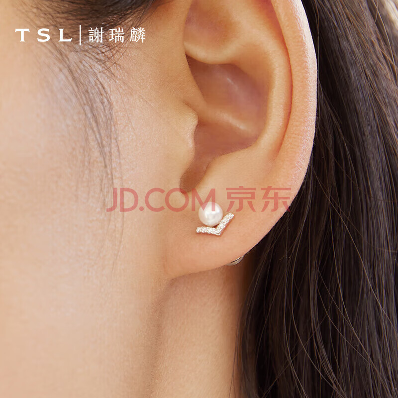 商品相册:谢瑞麟(TSL)18K金钻石耳钉线条珍珠系列镶嵌珍珠耳饰BD138第