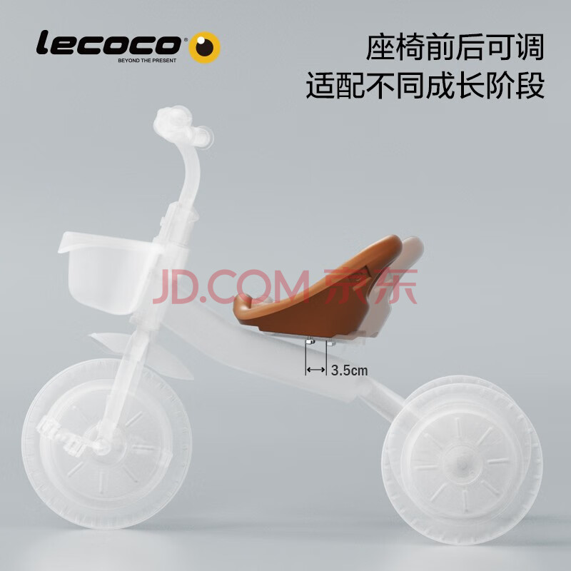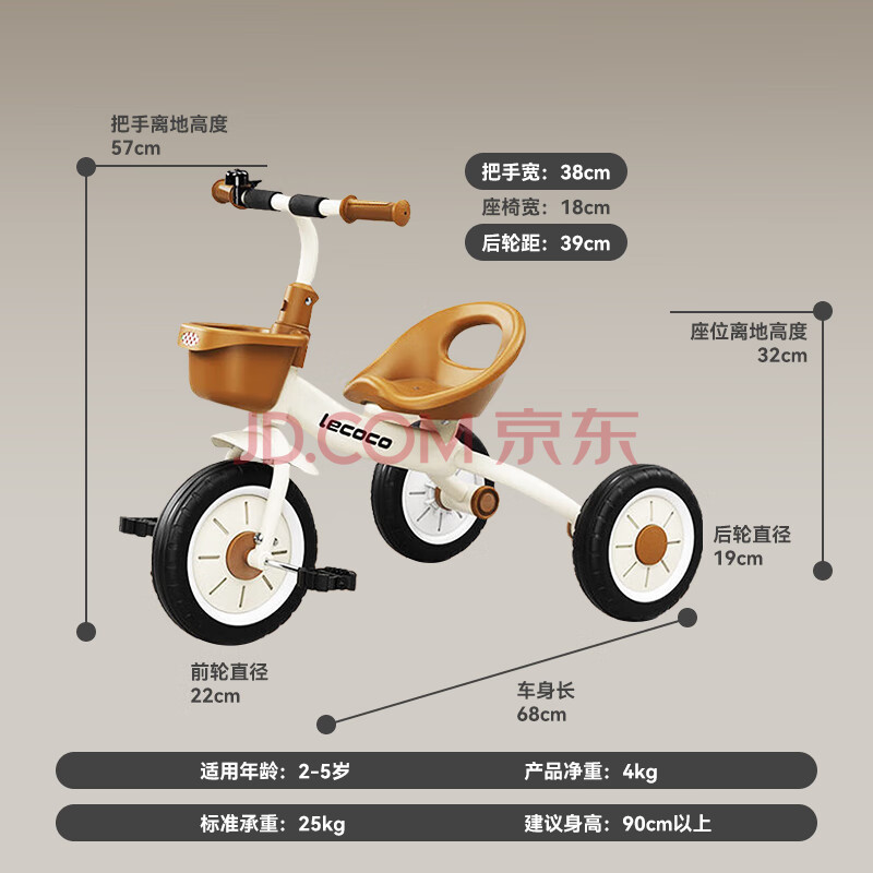商品相册:乐卡(Lecoco)儿童三轮车脚踏车小孩车2-6岁童车 瑞奇S1丝绒摩卡 第