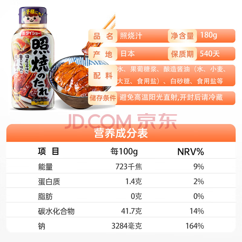 商品相册:大逸昌 日本进口 照烧汁180g 日式料理 照烧鸡腿盖饭汁 酱油鳗鱼饭酱汁第