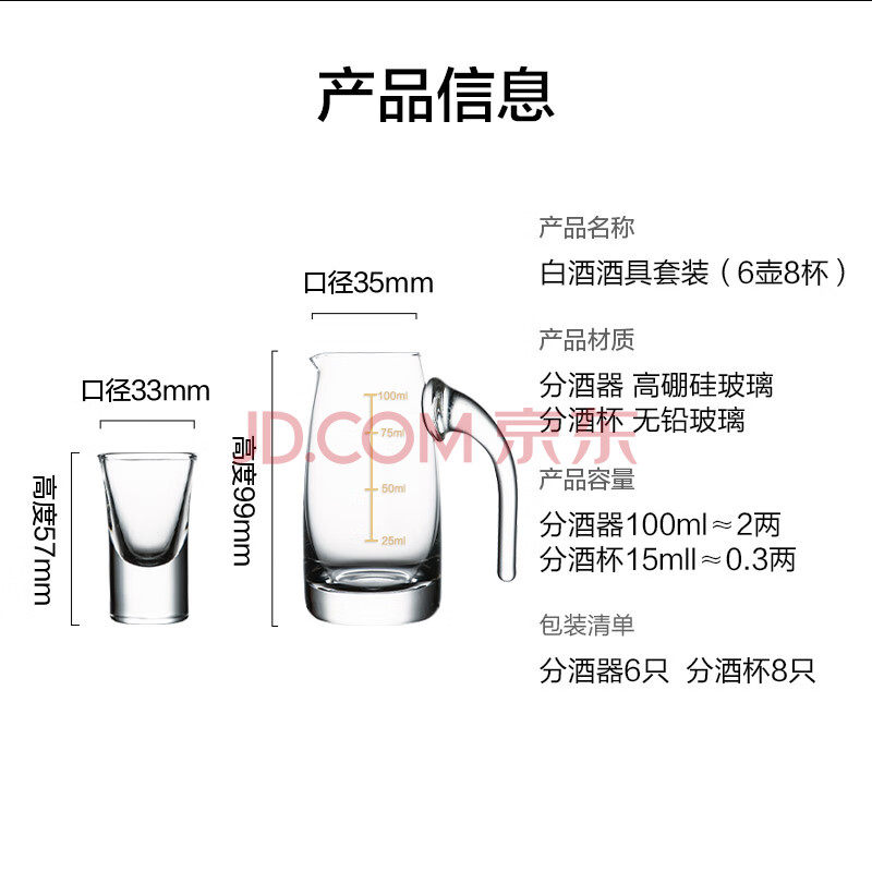 商品相册:京东京造 白酒分酒器 描金刻度酒盅白酒杯酒具礼盒套装6壶8杯第