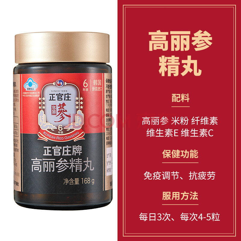 商品相册:正官庄人参红参精丸168g原装进口6年根高丽参丸提高免疫力 健康滋补礼品第