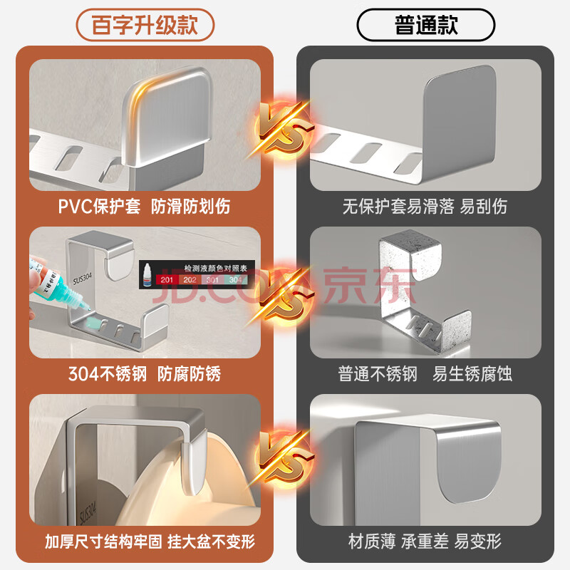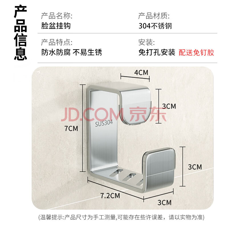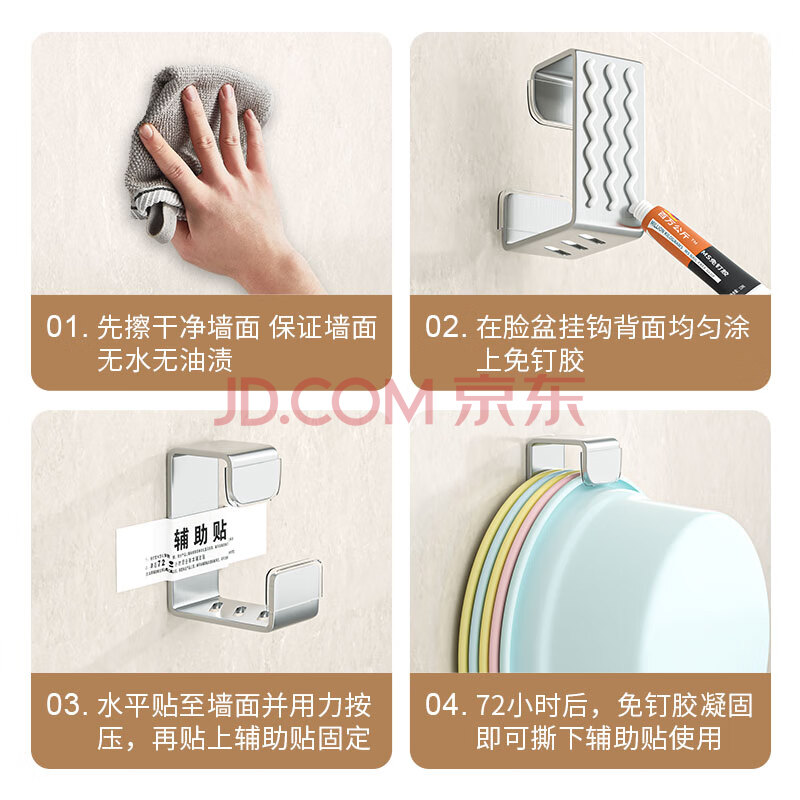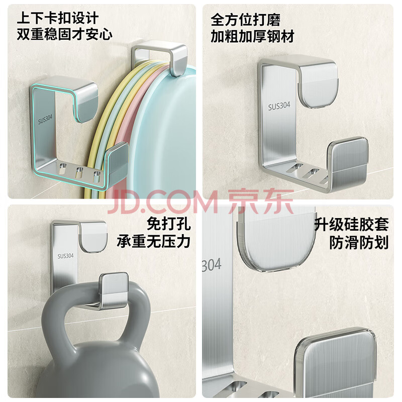 商品相册:百字脸盆挂钩304不锈钢脸盆置物架免打孔洗澡盆脸盆挂钩浴室挂盆神器第