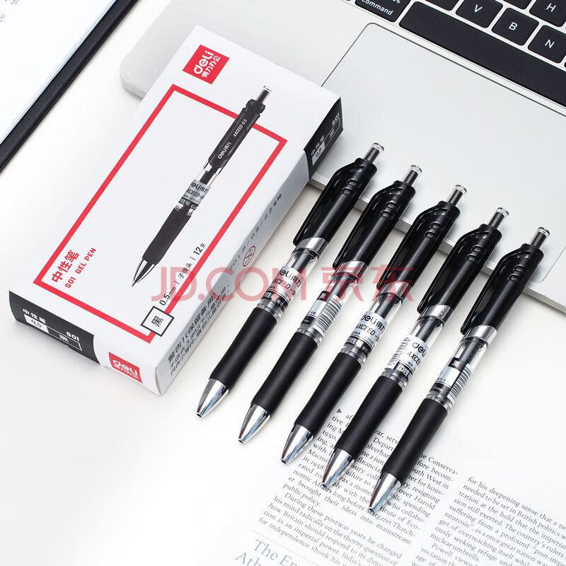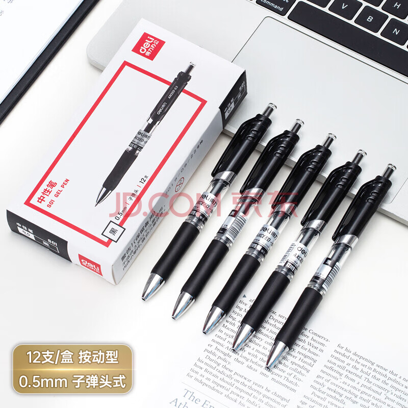 商品相册:得力(deli)S01中性笔签字笔 0.5mm子弹头经典办公按动笔水笔 黑色 12支/盒 (6盒装)RH.第
