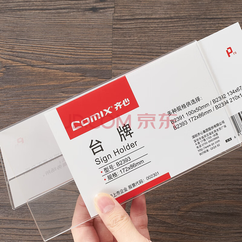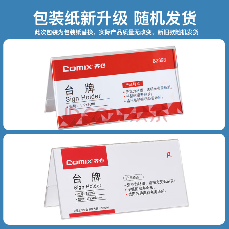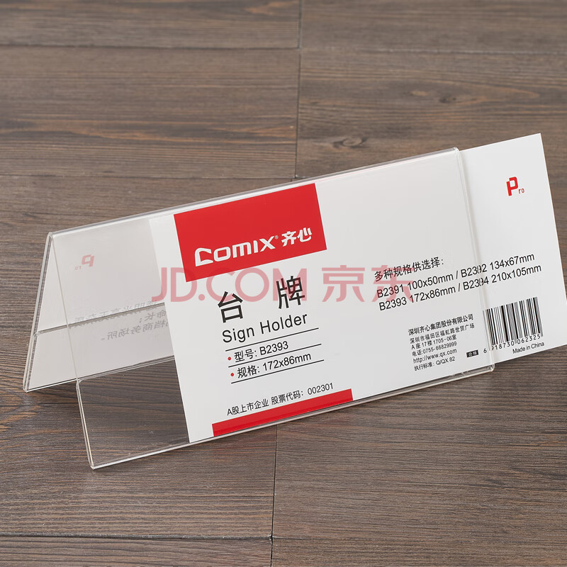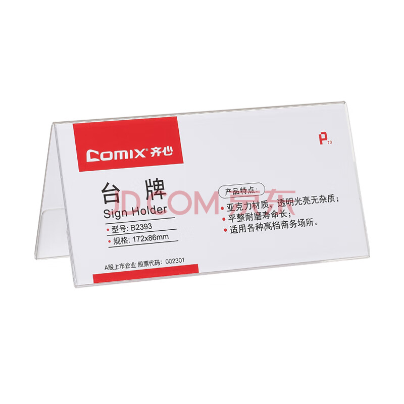 商品相册:齐心(COMIX)172x86mm 高透明亚克力V型双面台牌/台卡/座位牌 B2393第1张/共4