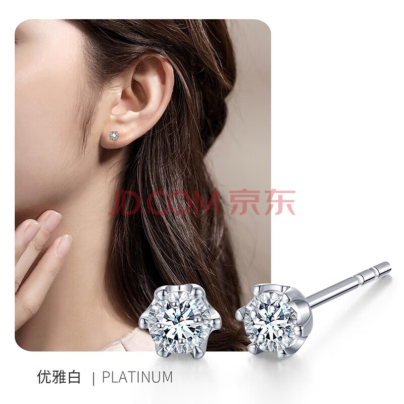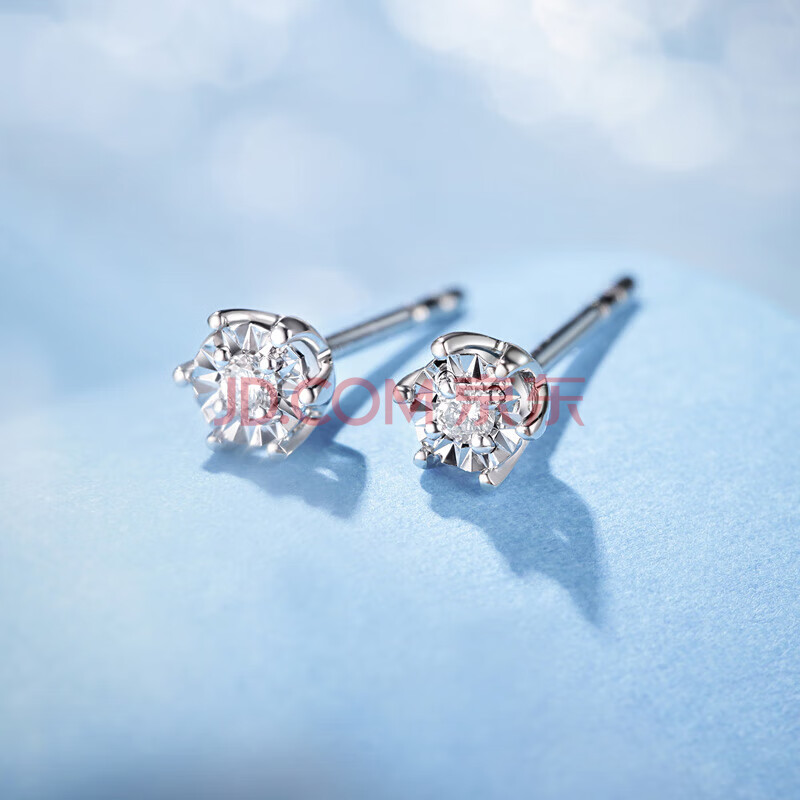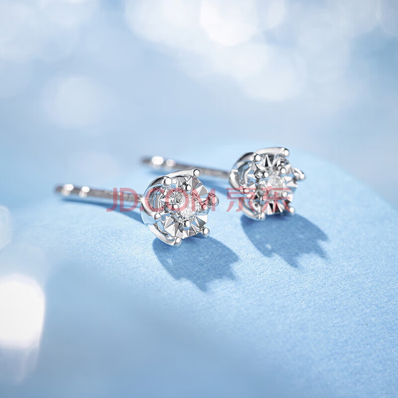 商品相册:喜钻生日礼物白18K金 80分效果钻石耳钉女送女友第