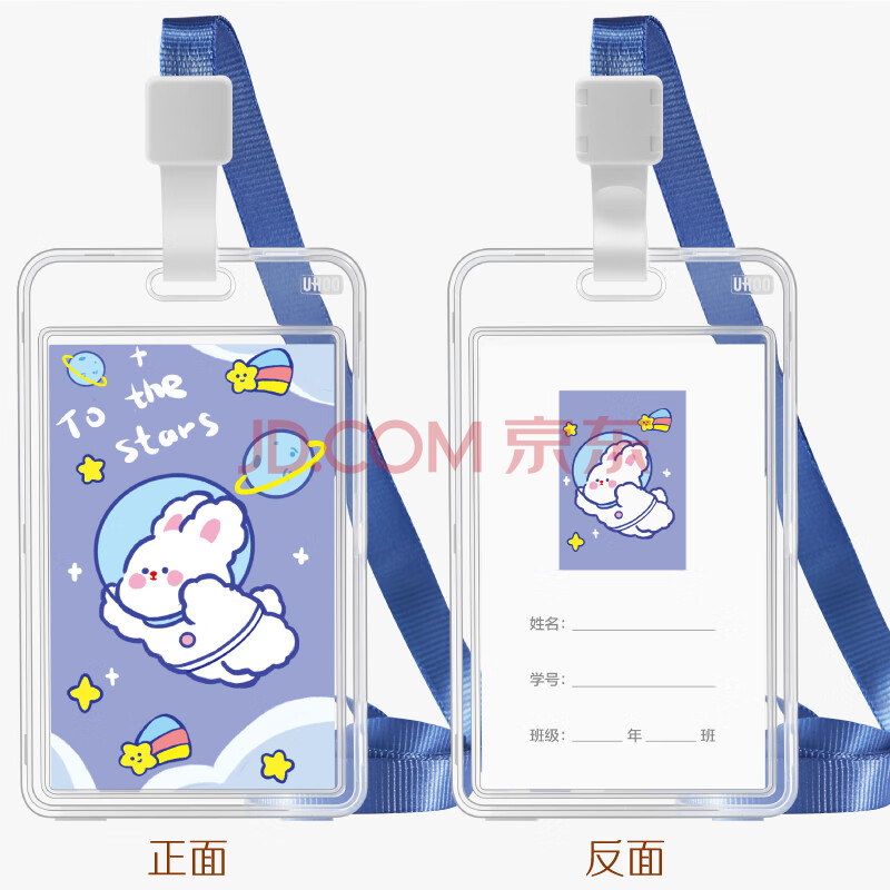 商品相册:优和(UHOO)【开学文具】双面透明竖式卡套 公交卡套保护套儿童学生胸牌工作牌卡套【可爱兔】卡套+挂绳 7026第