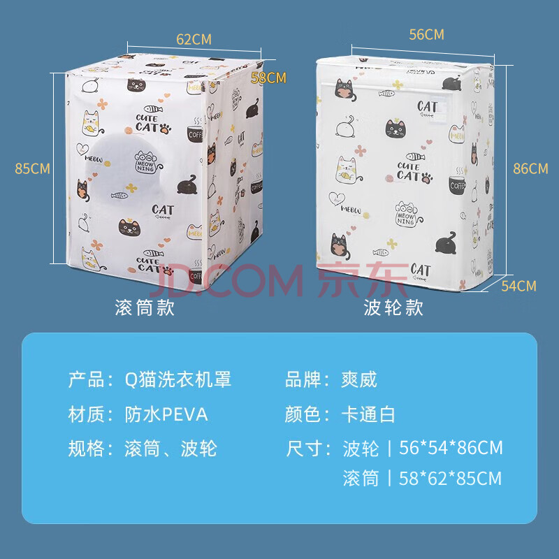 商品相册:爽威 洗衣机罩 波轮加厚 防尘防晒防水 适用小天鹅美的海尔西门子TCL7-10公斤均码通用 波轮Q猫 G12第