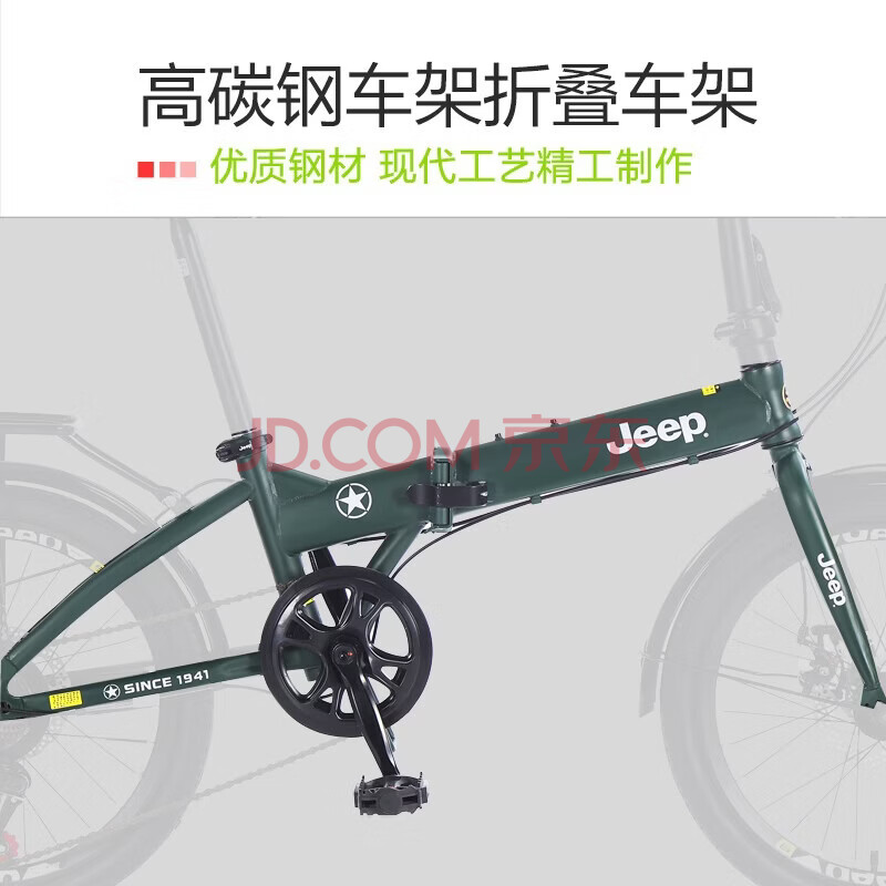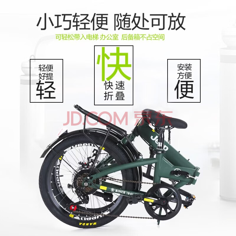 商品相册:Jeep吉普折叠自行车山地车20英寸7速男女休闲车学生变速单车-辐条轮第