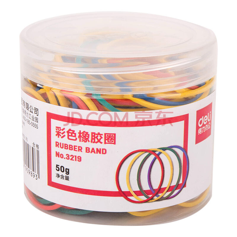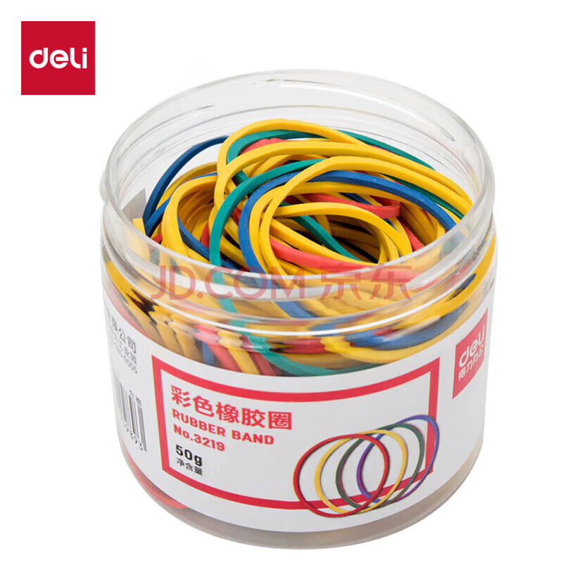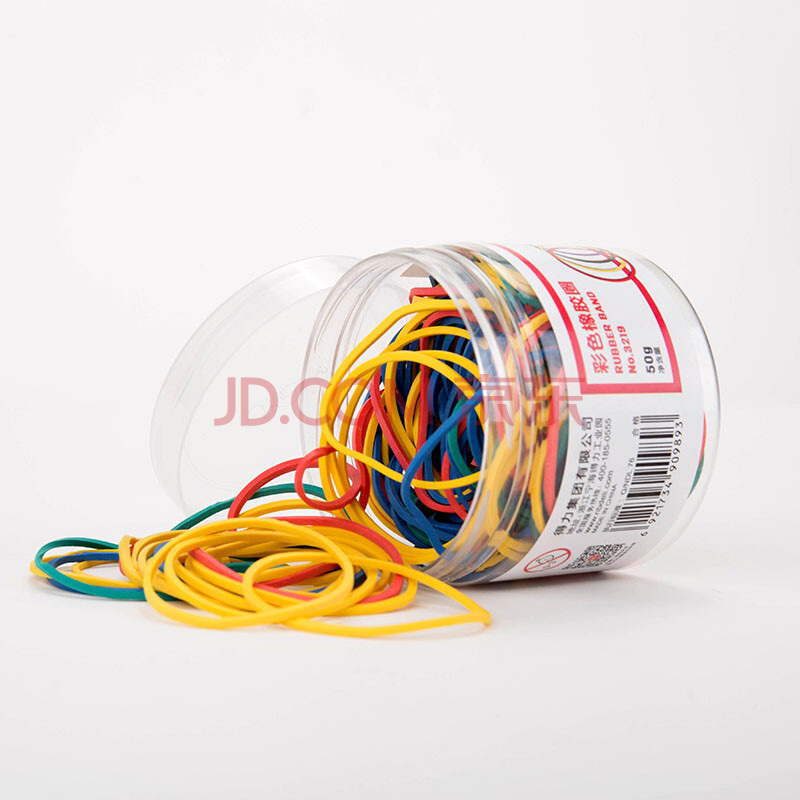 商品相册:得力(deli)【超级爆款】50g彩色高弹力橡胶圈/橡皮筋/乳胶圈 财务办公用品 单盒装 3219第1张/共6