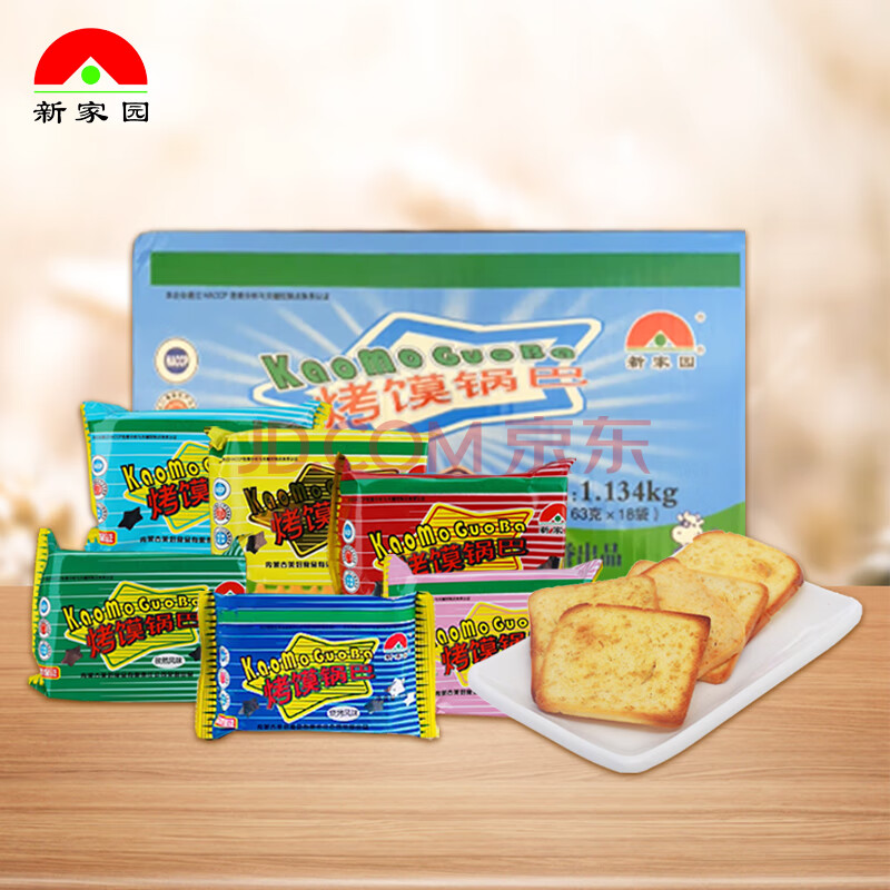 商品相册:新家园 休闲零食 饼干烤馍片锅巴多口味63g*18包/整箱第