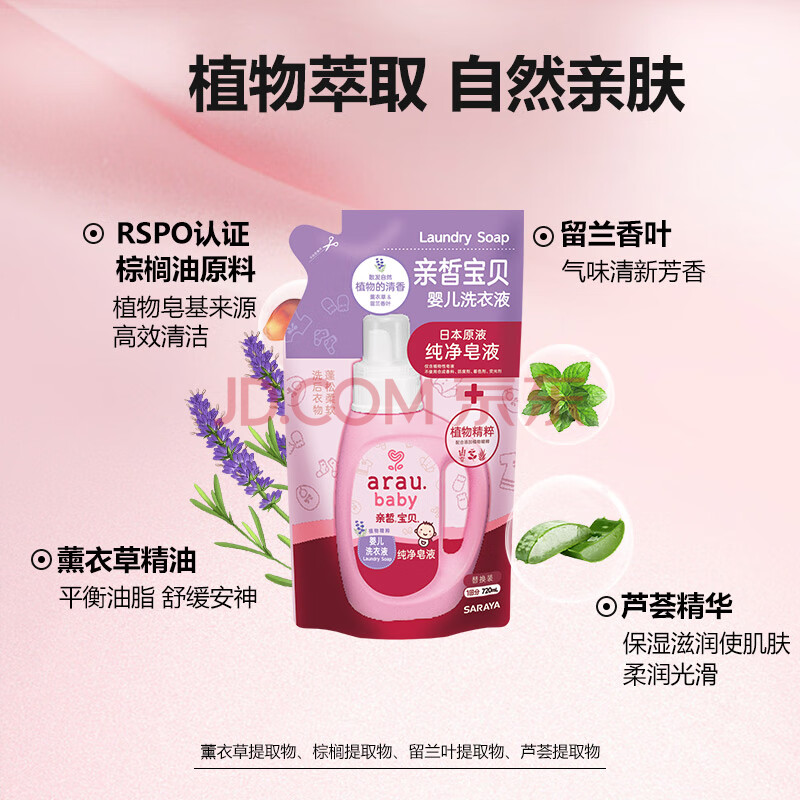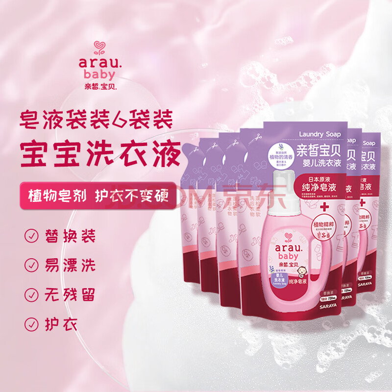 商品相册:亲皙宝贝(Arau baby)婴儿宝宝洗衣液幼儿儿童专用天然植物皂液6袋补充装【8.64斤】第