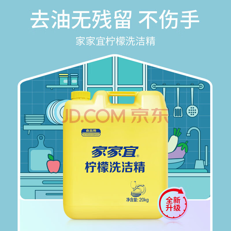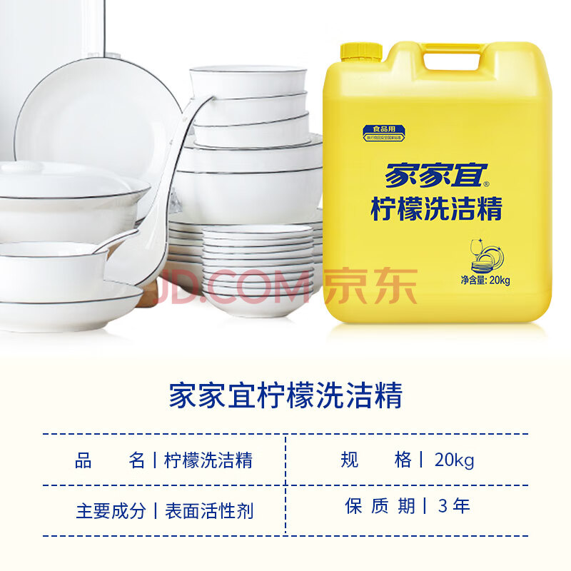 商品相册:家家宜柠檬洗洁精 商用大桶20kg洗涤灵 果蔬餐具清洗剂A类食品用洗涤剂第1张/共8