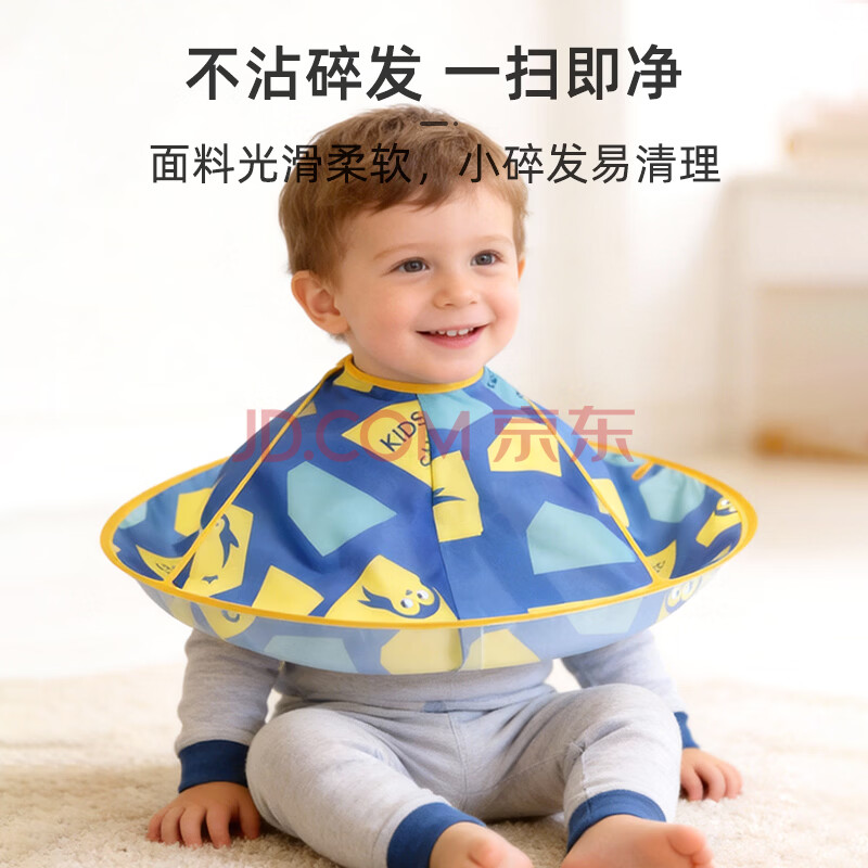商品相册:9i9儿童理发围布罩衣剪发斗篷宝宝围兜可调节脖围851蓝第1张/共6