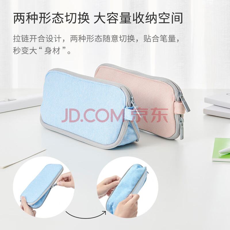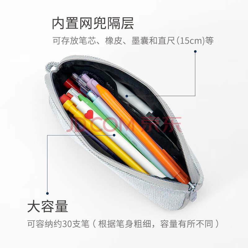 商品相册:KACO爱收大容量文具袋 学生笔袋网兜隔层收纳袋铅笔盒 浅岩灰K1223第