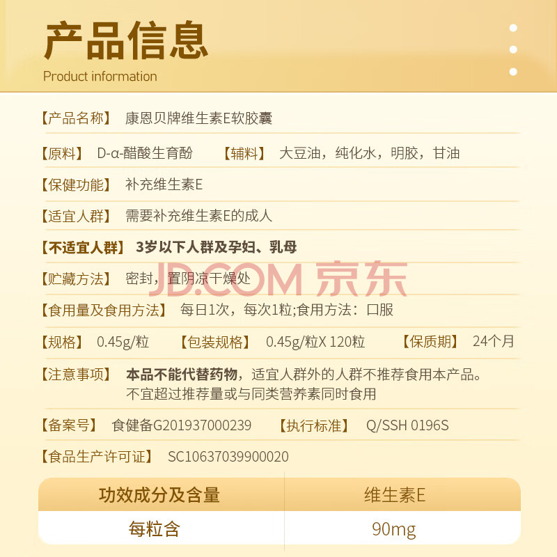商品相册:康恩贝 维生素E软胶囊 0.45g/粒*120粒 维生素e VE 维e胶囊第