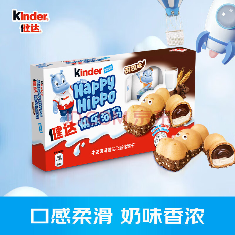 商品相册:健达 快乐河马巧克力饼干 5条103.5g 可可酱注心 糖果 生日礼物 零食第