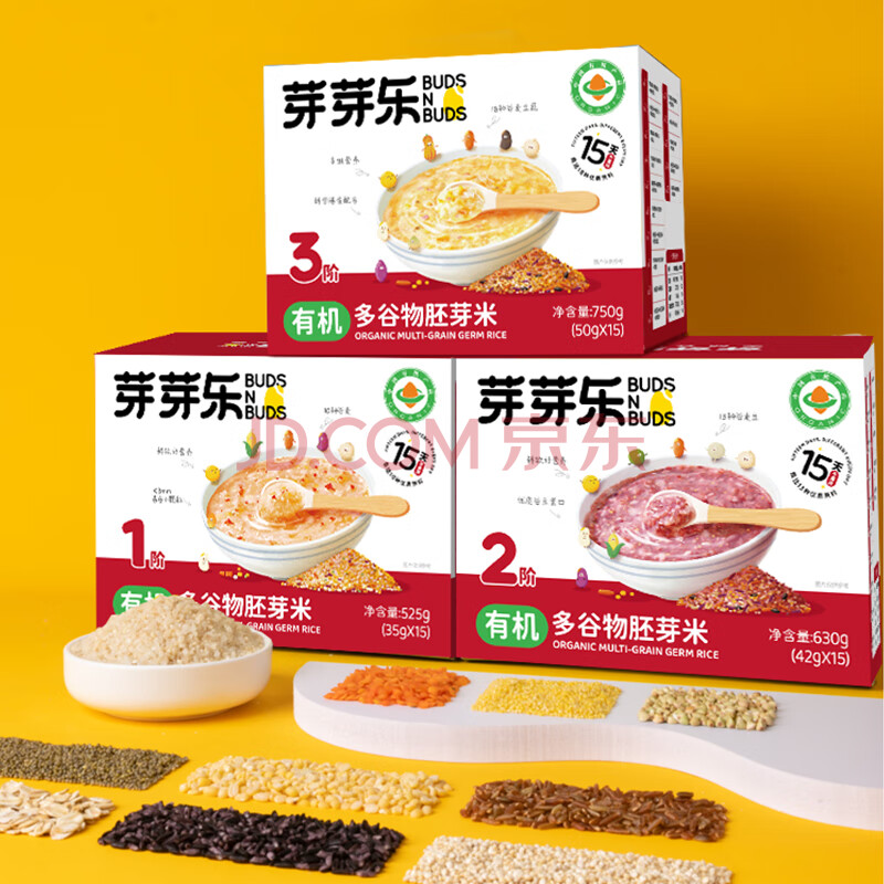 商品相册:芽芽乐15天不重样3阶宝宝辅食粥米 有机胚芽米杂粮宝宝粥米50g*15第