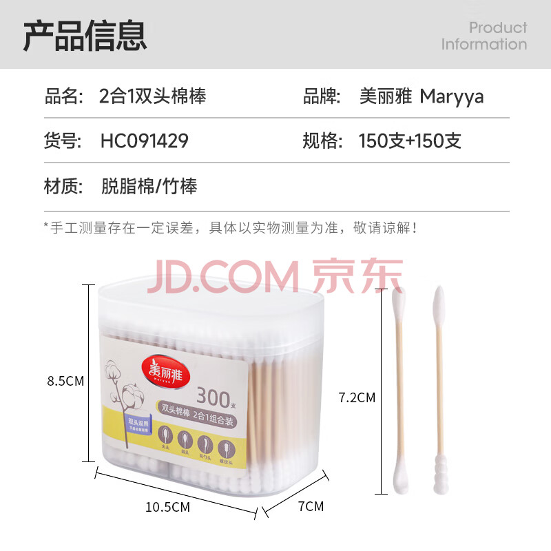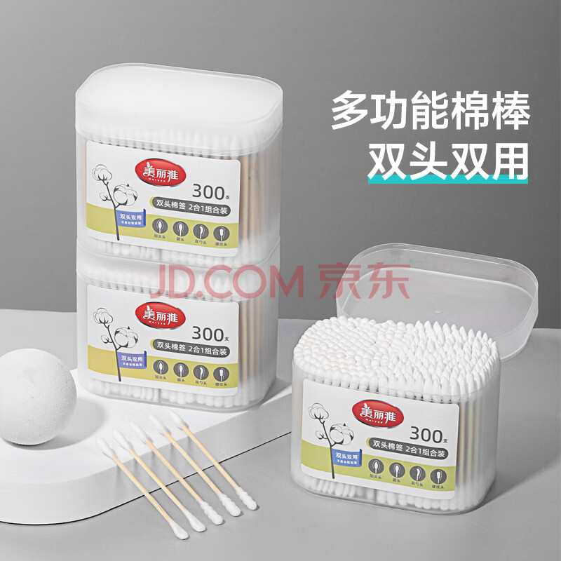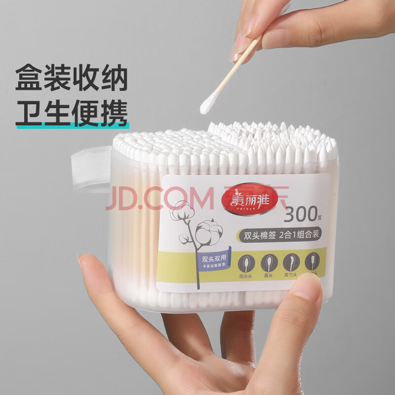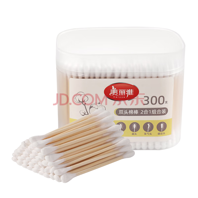 商品相册:美丽雅多头棉签300只盒装掏耳化妆尖头圆头螺旋清洁多功能挖耳勺棉签棒第