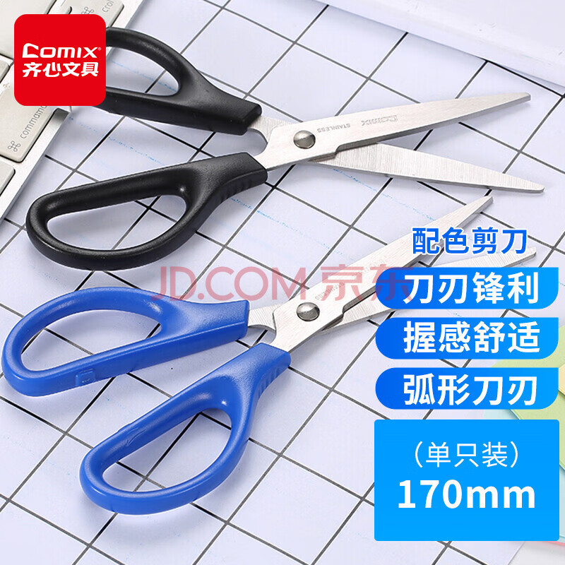 商品相册:齐心(Comix)剪刀中号标准办公剪刀 剪子 170mm 办公用品 1把 B2715蓝色第