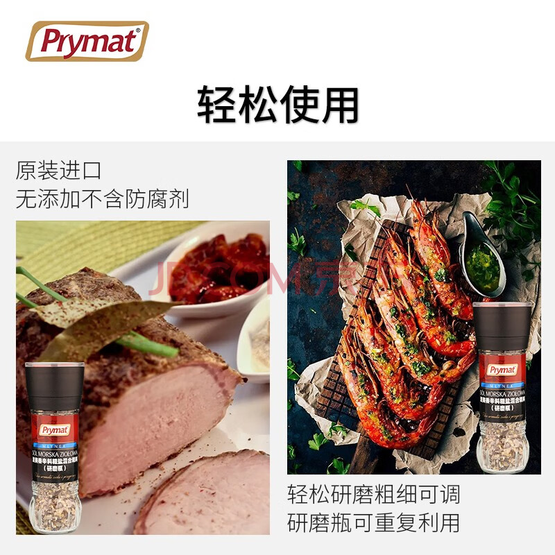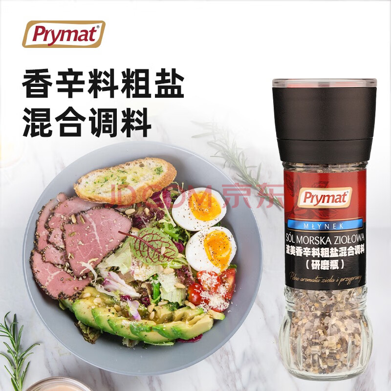 商品相册:Prymat 波兰进口 波美香辛料海盐调味料80g 研磨瓶重复使用低脂罗勒粗盐第