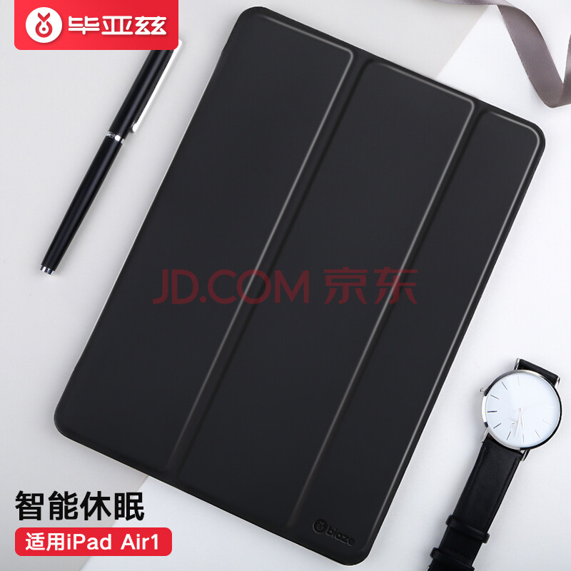 商品相册:毕亚兹适用iPad Air1/2 9.7英寸保护套 苹果平板电脑5/6代通用保护壳轻薄防摔智能休眠三折支架PB13-黑色第