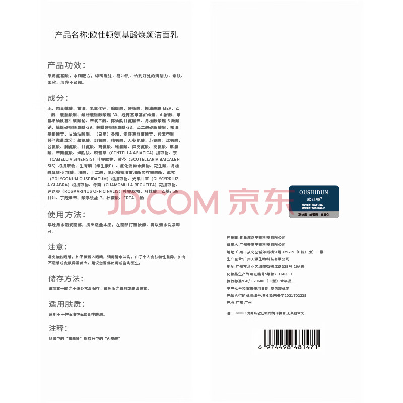 商品相册:欧仕顿男士专用洗面奶氨基酸控油补水保湿脸部油肌痘痘化妆护肤品洁面乳第