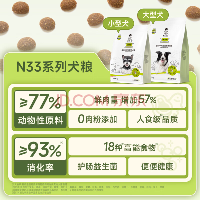 商品相册:诚实一口N33全价犬粮狗粮中大型犬 高鲜肉33种全面营养长壮护肠胃2.5kg第