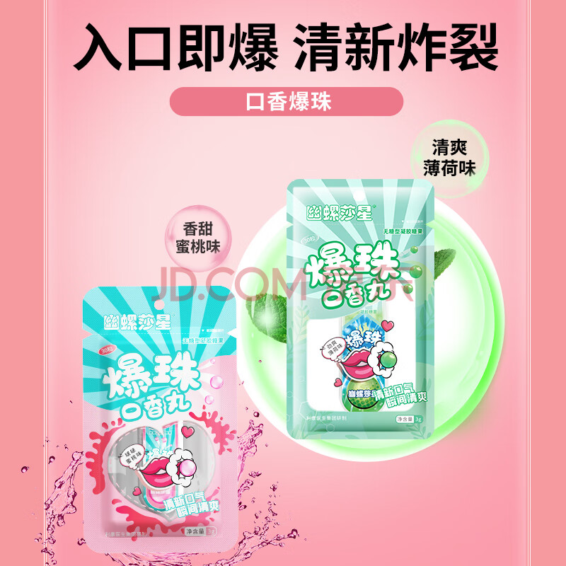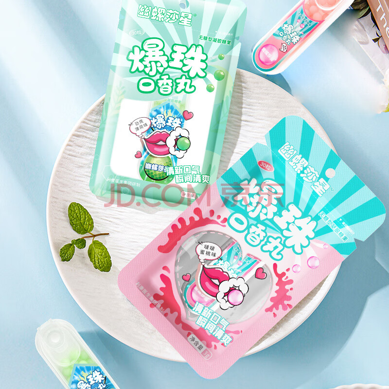 商品相册:幽螺莎星爆珠丸爆珠口香丸糖口气清新薄荷糖口香珠约会接吻糖4盒*30粒第