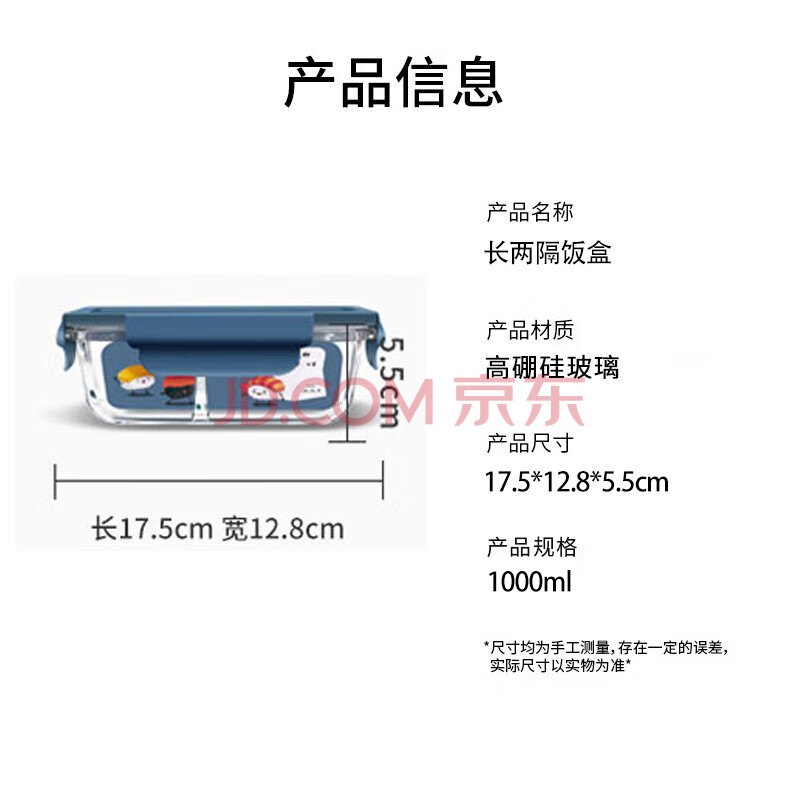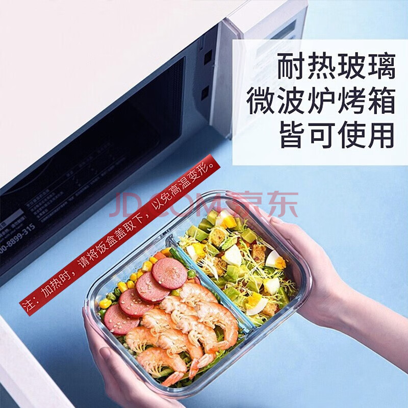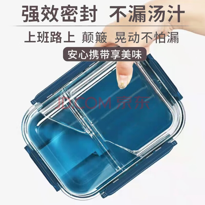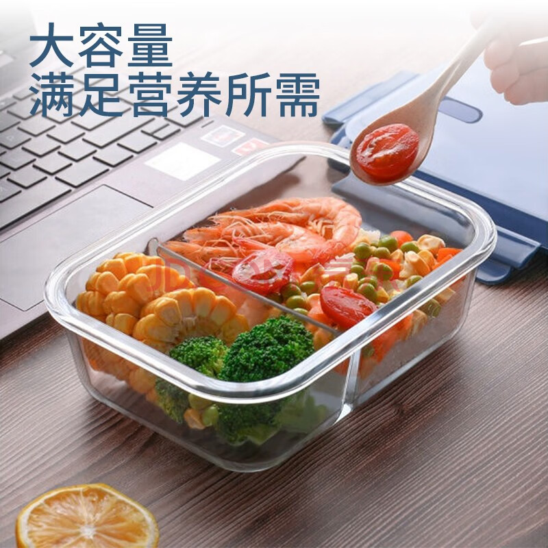 商品相册:拾画 高硼硅玻璃保鲜盒 微波炉可用二分隔饭盒1000ml带饭便当盒餐盒第1张/共7