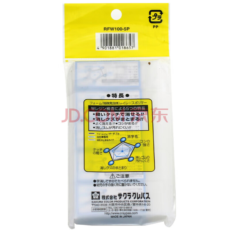 商品相册:樱花(SAKURA)橡皮擦学生考试美术绘图橡皮 XRFW100-5P 5块套装第