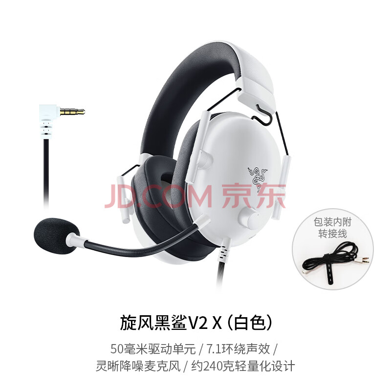 商品相册:雷蛇(Razer)旋风黑鲨V2 X 有线头戴式电竞游戏耳机耳麦 被动降噪 吃鸡神器 白色 适配三角洲行动第