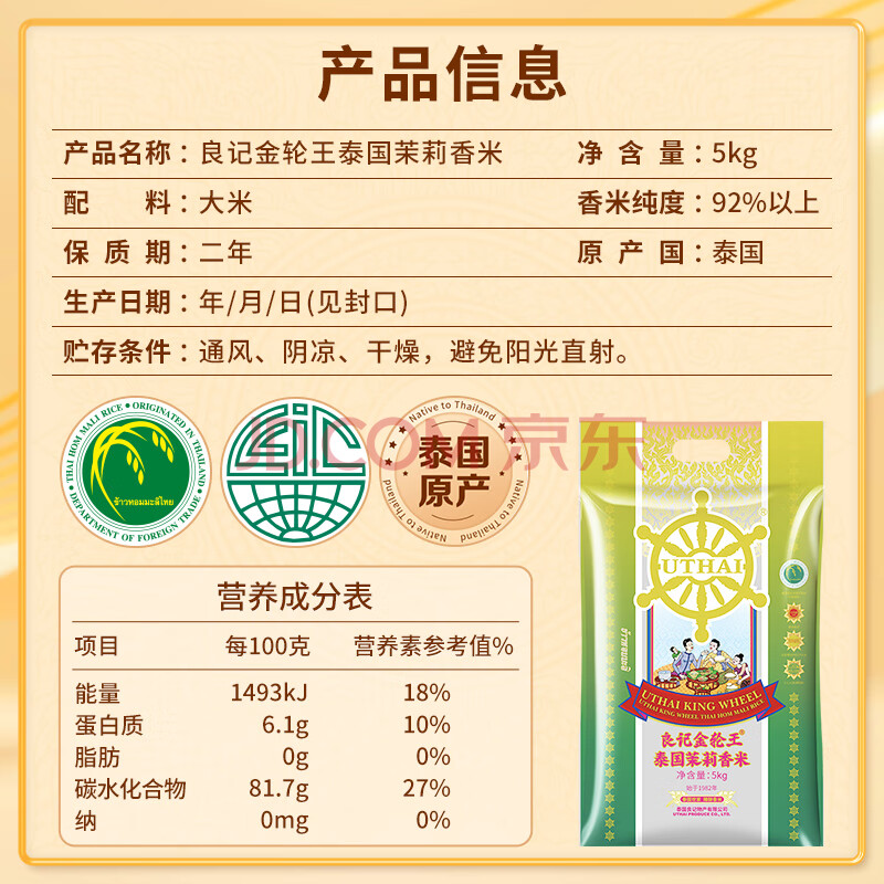 商品相册:良记金轮王 泰国茉莉香米10斤 泰国香米原装进口 清莱府进口大米 长粒籼米第