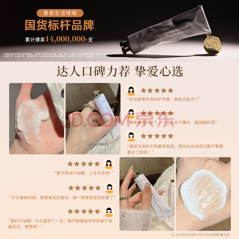 商品相册:独特艾琳(Dear lrean)香氛护手霜10ml体验装滋润保湿不粘腻持久留香【香型随机】第