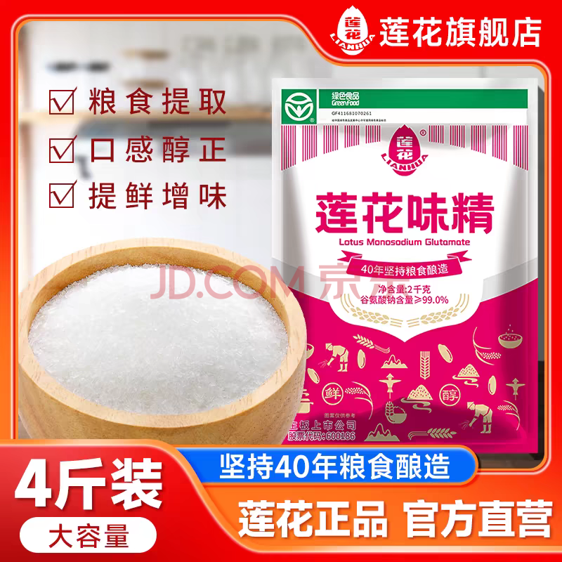 商品相册:莲花味精2000g 【纯粮酿造99%高纯度】零添加 家用大包装 餐饮批发第1张/共6