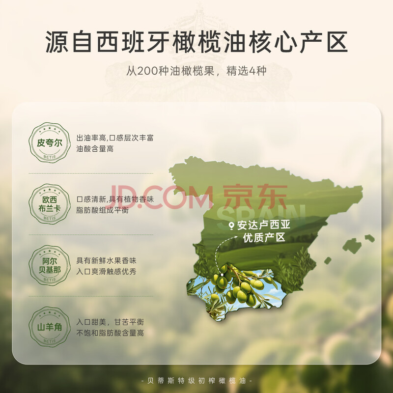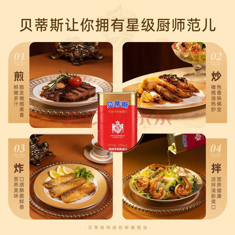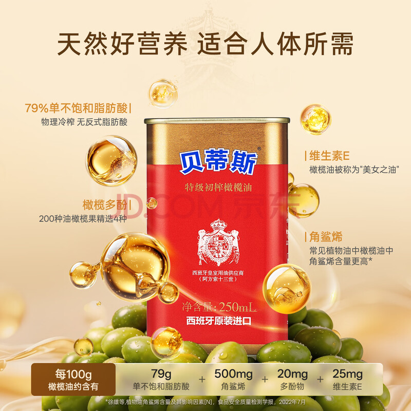 商品相册:贝蒂斯(BETIS)【保真橄榄油】特级初榨橄榄油250ML *8,合计2L 家庭钜惠装第
