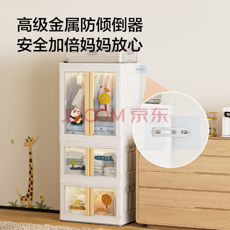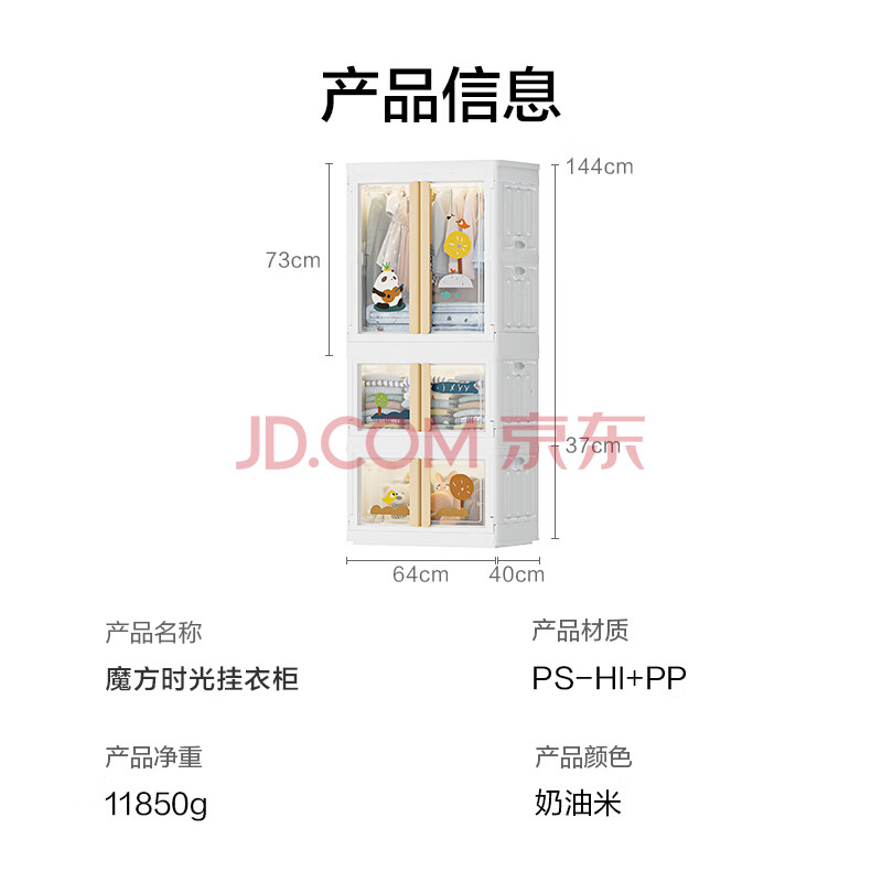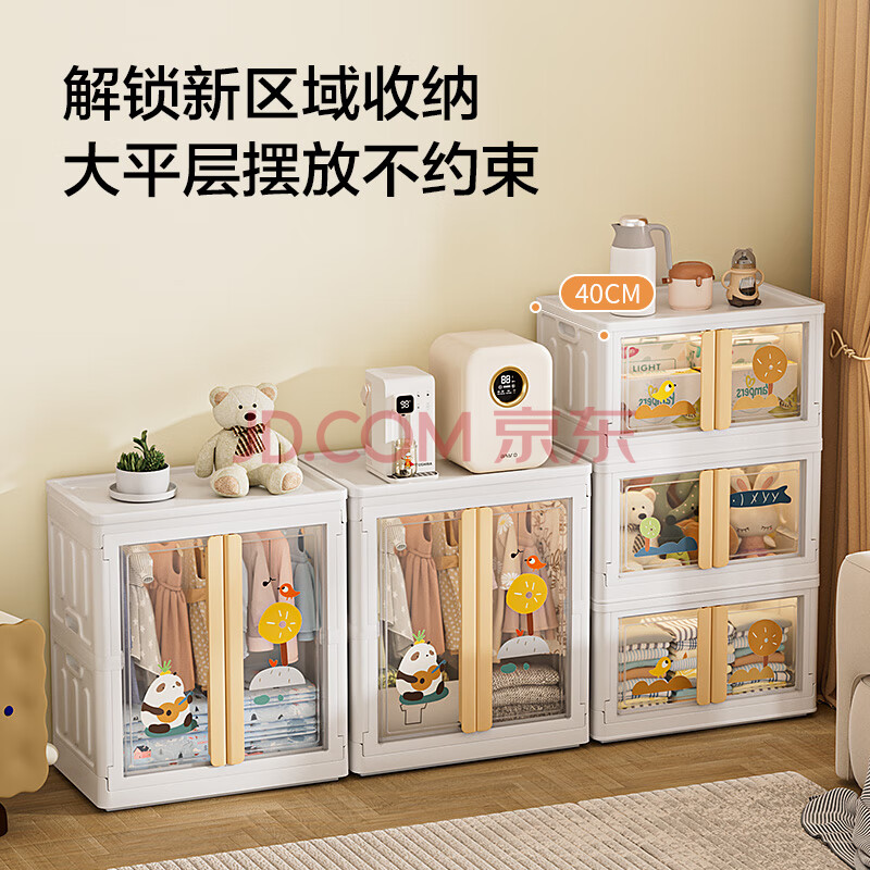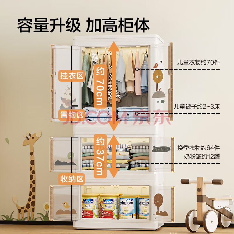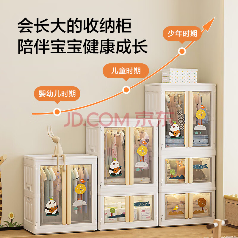 商品相册:京东京造 熊熊儿童衣柜 童装衣物收纳柜宝宝裙子加高衣柜 64面宽3层第