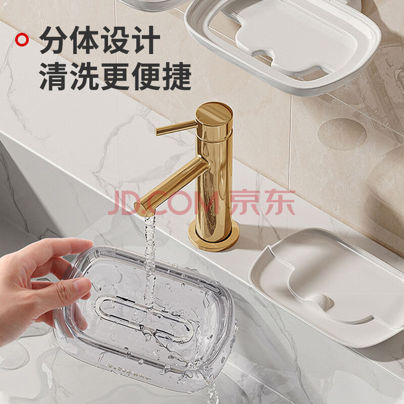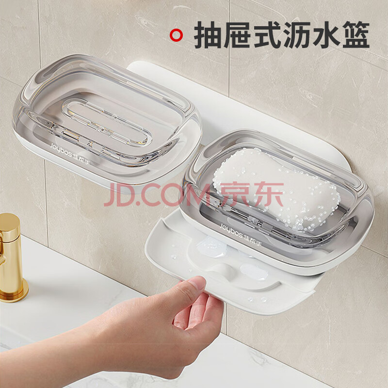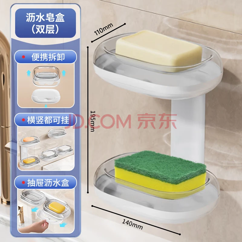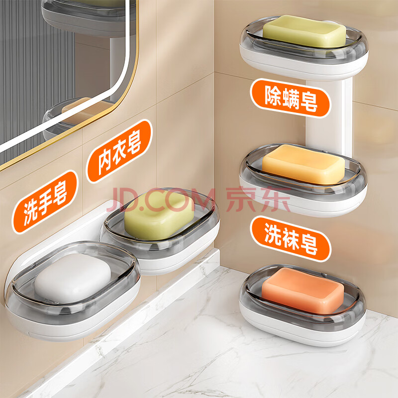 商品相册:佳帮手肥皂盒壁挂式香皂盒免打孔浴室墙上卫生间可拆卸沥水置物架双层第1张/共5