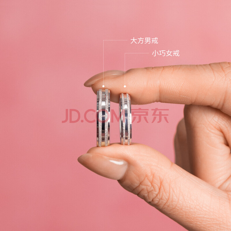 商品相册:周六福PT950铂金戒指甜爱白金情侣对戒男女款 10号 约2.8g第