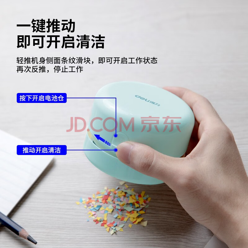 商品相册:得力【儿童节礼物】强吸力桌面吸尘器 迷你键盘除尘清洁 橡皮屑清洁器学生用品 办公用品 浅绿18880第
