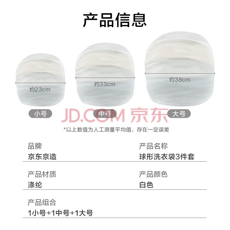 商品相册:京东京造 球形洗衣袋 衣物清洁袋 洗衣保护袋 3件套 机洗 洗衣袋细网 大号第1张/共8