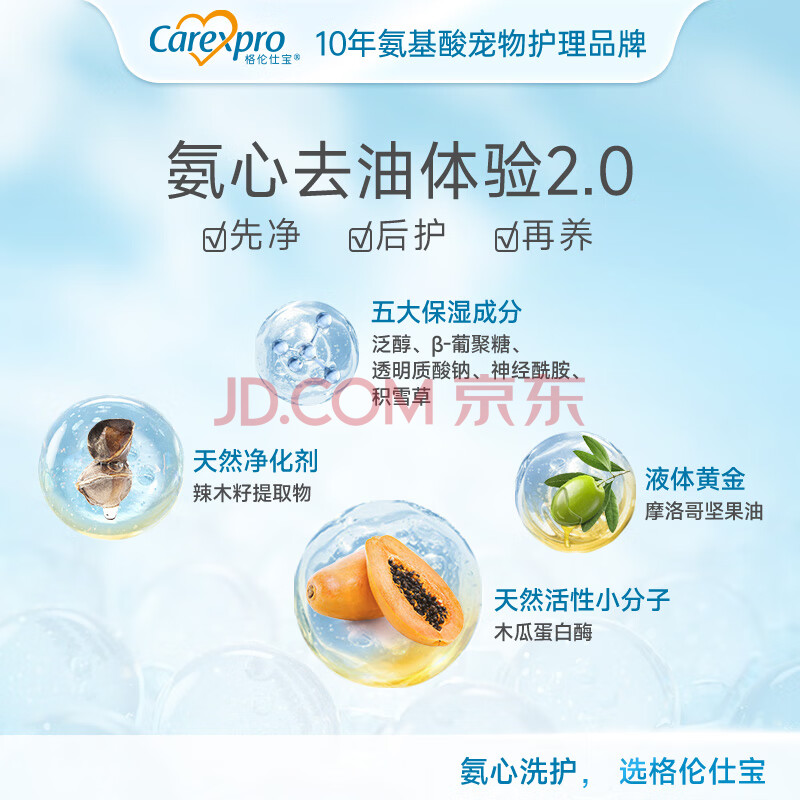 商品相册:格伦仕宝(Carexpro)猫咪沐浴露美毛去油精华去黑下巴油尾巴洗护去油500ml第1张/共4
