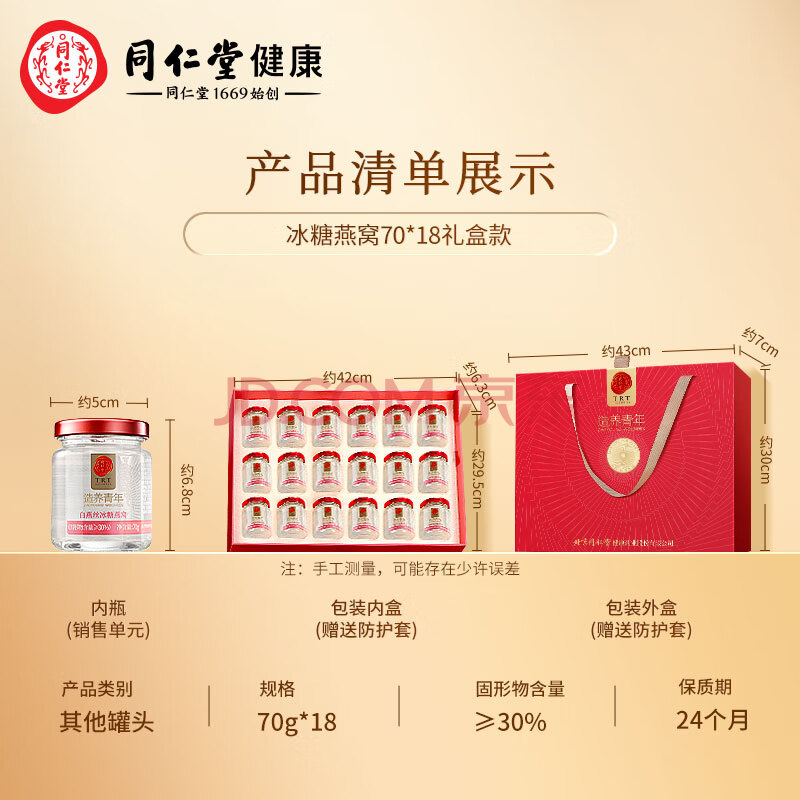 商品相册:同仁堂北京同仁堂即食燕窝送礼长辈孕妇补品气血营养品礼品礼盒70g*18瓶第