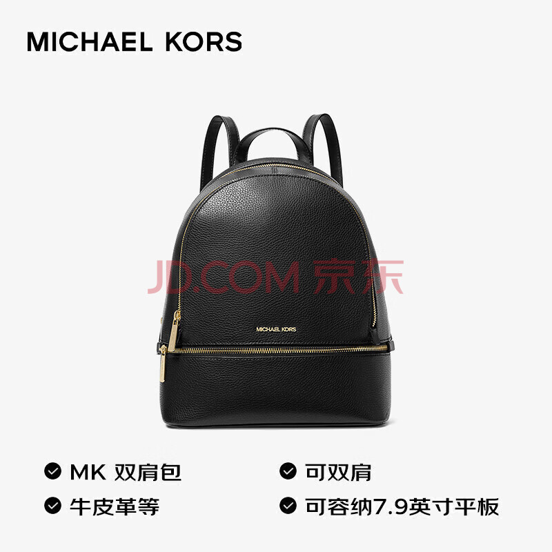 商品相册:MICHAEL KORS礼物轻奢MK女包RHEA大容量双肩包 中号 黑色第